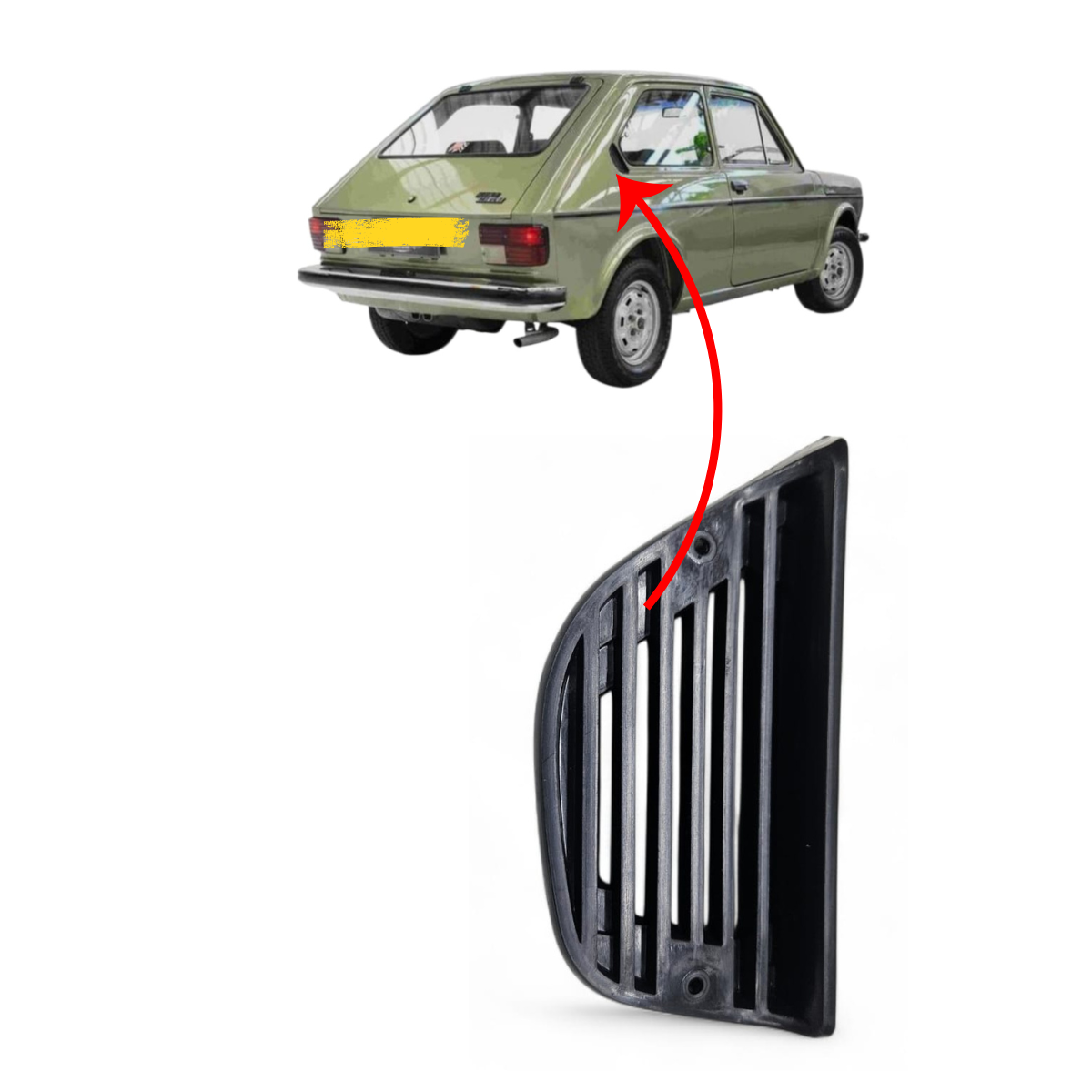GRADE ENTRADA AR ESQUERDA TRASEIRA (ORELHA) FIAT 147 LE COD JAHU: 603235 COD ORIG: 4346931 COD: 346 01 UNIDADE - LE APLICAÇÃO FIAT: TODOS